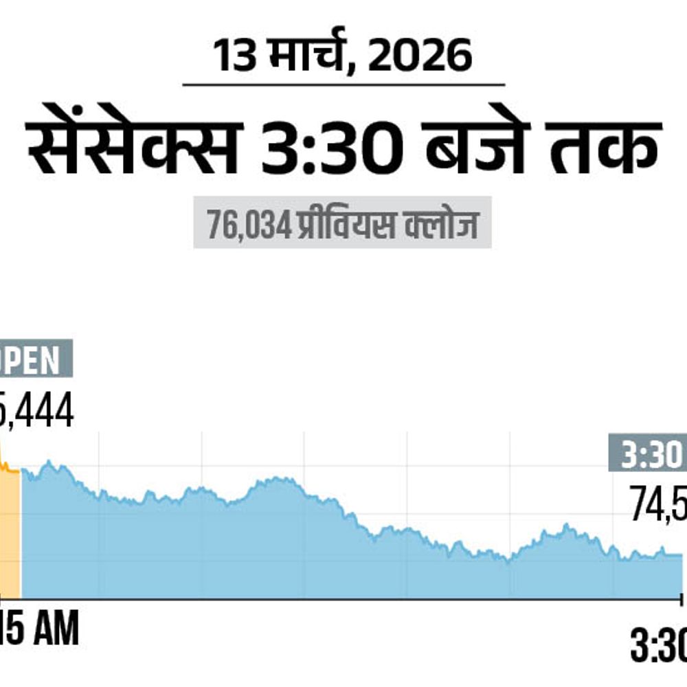 अमेरिका-इजराइल और ईरान जंग के बीच शेयर बाजार में आज यानी शुक्रवार 13 मार्च को लगातार तीसरे दिन गिरावट रही। सेंसेक्स 1470 अंक (1.93%) की गिरावट के साथ 74,564 पर बंद हुआ। वहीं निफ्टी में भी 488 अंक (2.06%) की गिरावट रही, ये 23,151 पर आ गया है। आज मेटल, ऑटो और बैंकिंग शेयर्स में सबसे ज्यादा गिरावट रही।